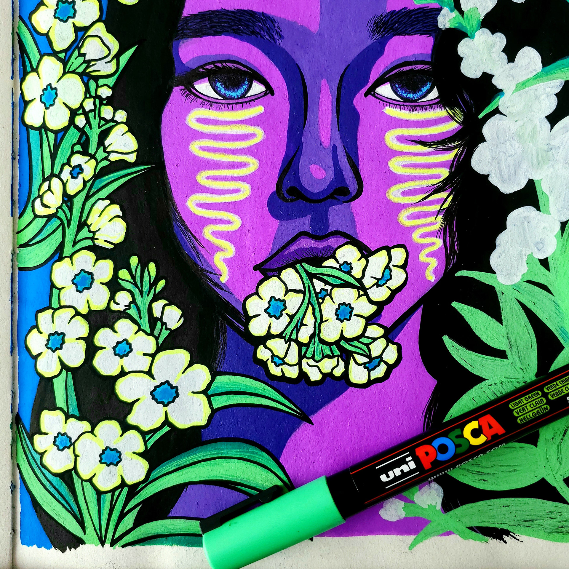 media used:  Posca marker and ink pen in mixed media sketchbook